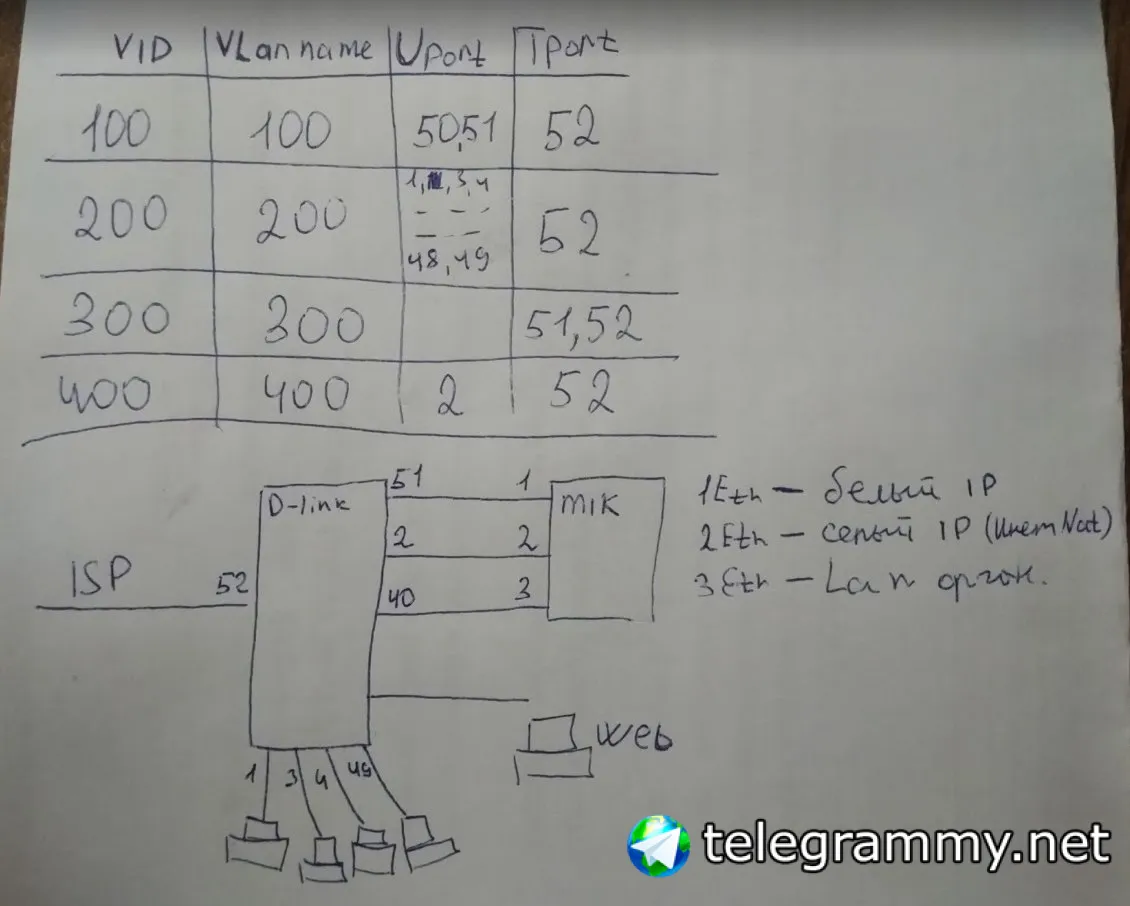 400 – Серый IP от провайдера, 52 порт тегированный провайдер,