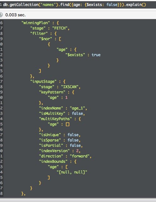 $exists: false не использует индексы, если что