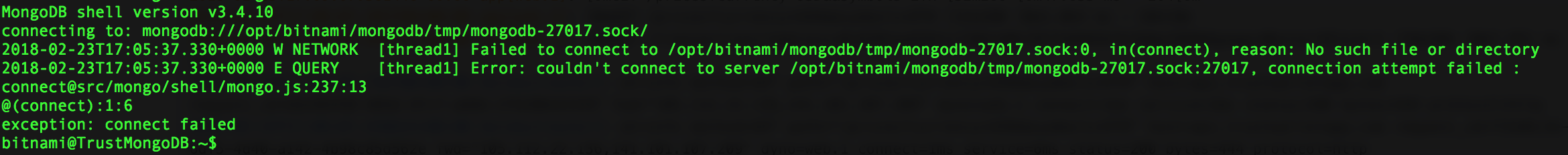 Как узнать где mongo ищет путь к mongodb:///opt/bitnami/mongodb/tmp/mongodb-27017.sock/ в какомто конфигурационном файле ?.