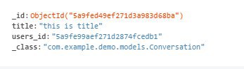 { "_id" : ObjectId("5a9f9528be2c489192445182"), "field" : "value" }
