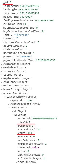 Кто пожет помочь с запросом. Нужно у данного _id изменить в accountsBag->items->... count где itemid=7 )