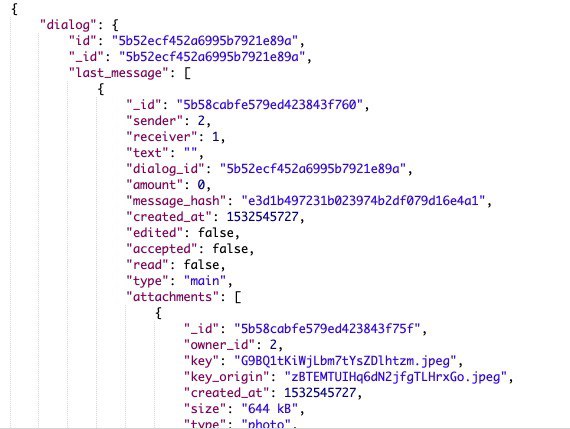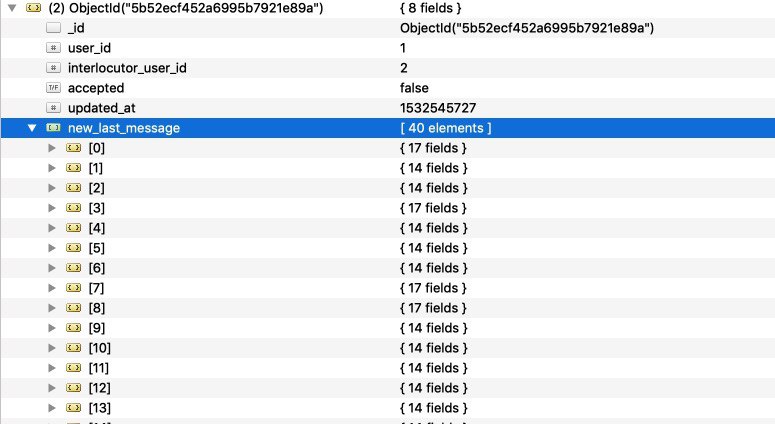 пример. У меня есть коллекция "dialogs" в нех хранится ид отправителя и ид получателя, время создания, когда юзер отправляет сообщение, они идут в коллекцию messages с полем dialog_id