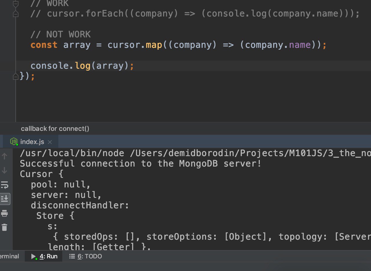 Можете подсказать, при работе с курсором, в каких случаях нужно пользоваться forEach а когда map? (второй у меня вообще не работает, либо я чего-то недопонял)...