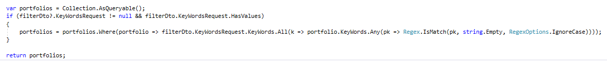 тебе походу BsonRegularExpression надо както состряпать
