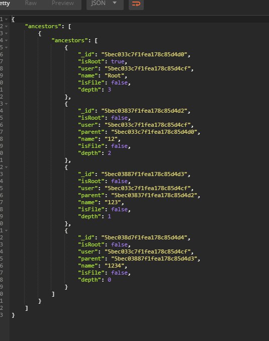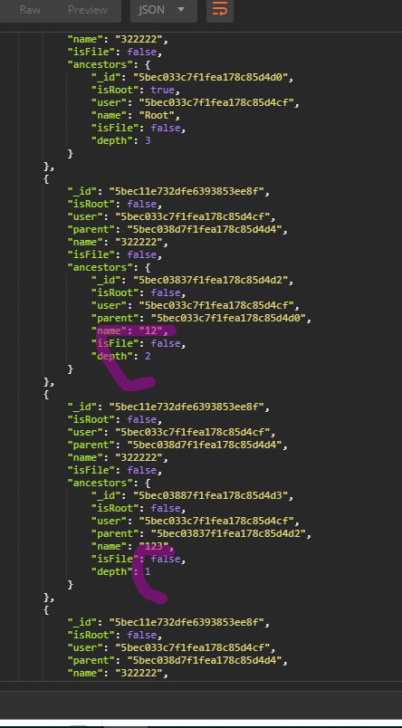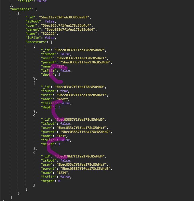 теперь надо как то верно отдать результат ... убрать из каждого элемента данные кроме ancestors ...