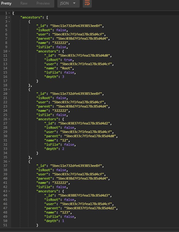 ну и для каждого потомка можно включать в ответ ишь следующие данные _id, name, depth (хотя опять же лишние поля можно игнорить...)