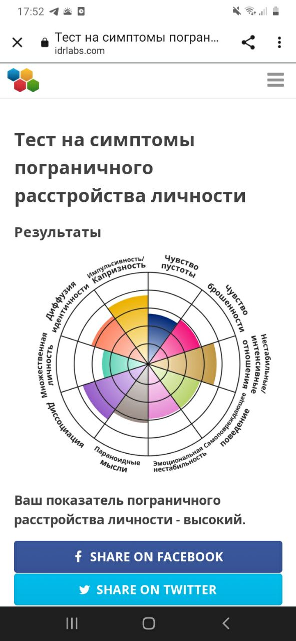 С собой я работаю, у меня тоже психотерапевт есть. И вот сколько я своего психотерапевта не спрашивала, может у меня тоже какое расстройство, а? Она сказала успокойтесь, у вас невроз и склонность к созависимости. Но никаких расстройств личности у вас нет.