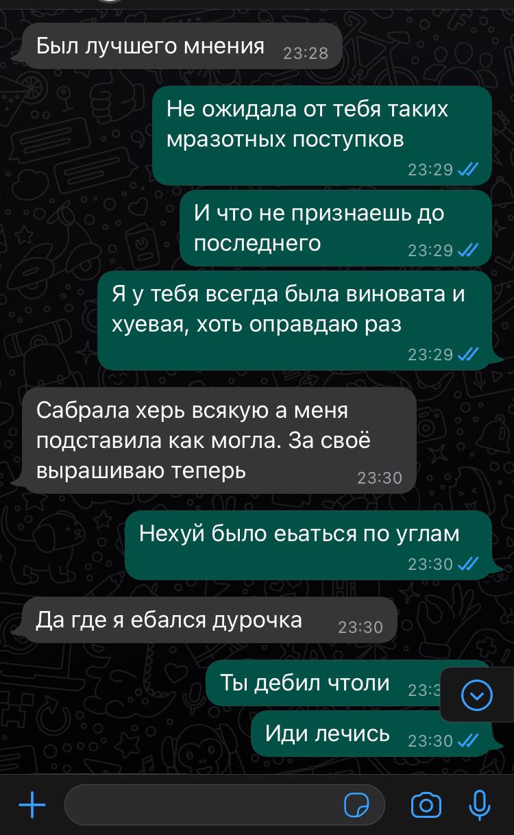 У меня бывший летом ночевал на коврике около двери, жалко что не на таком 🤣 Кстати палил все мои сторисы, я на тот момент была в Анапе( сама с Нск), оборвал телефоны всем моим подругам, я просыпаюсь, а от них голосовые, типа не уйду, пока дверь не откроет…, а сам в числе первых с левого аккаунта херачил, подглядывал Капец. Я - то конечно повелась на его жалостливые потуги меня найти, по прилету, встретилась, но получив по голове в очередной раз, подругам запретила даже в суе упоминать эту тварь… так по тихой с лета начался неконтакт, и в последний раз его еб@о, простите , видела в сентябре. А коврик Шкура прям бы к месту был. Поскольку он - шкура это 💯 🤣