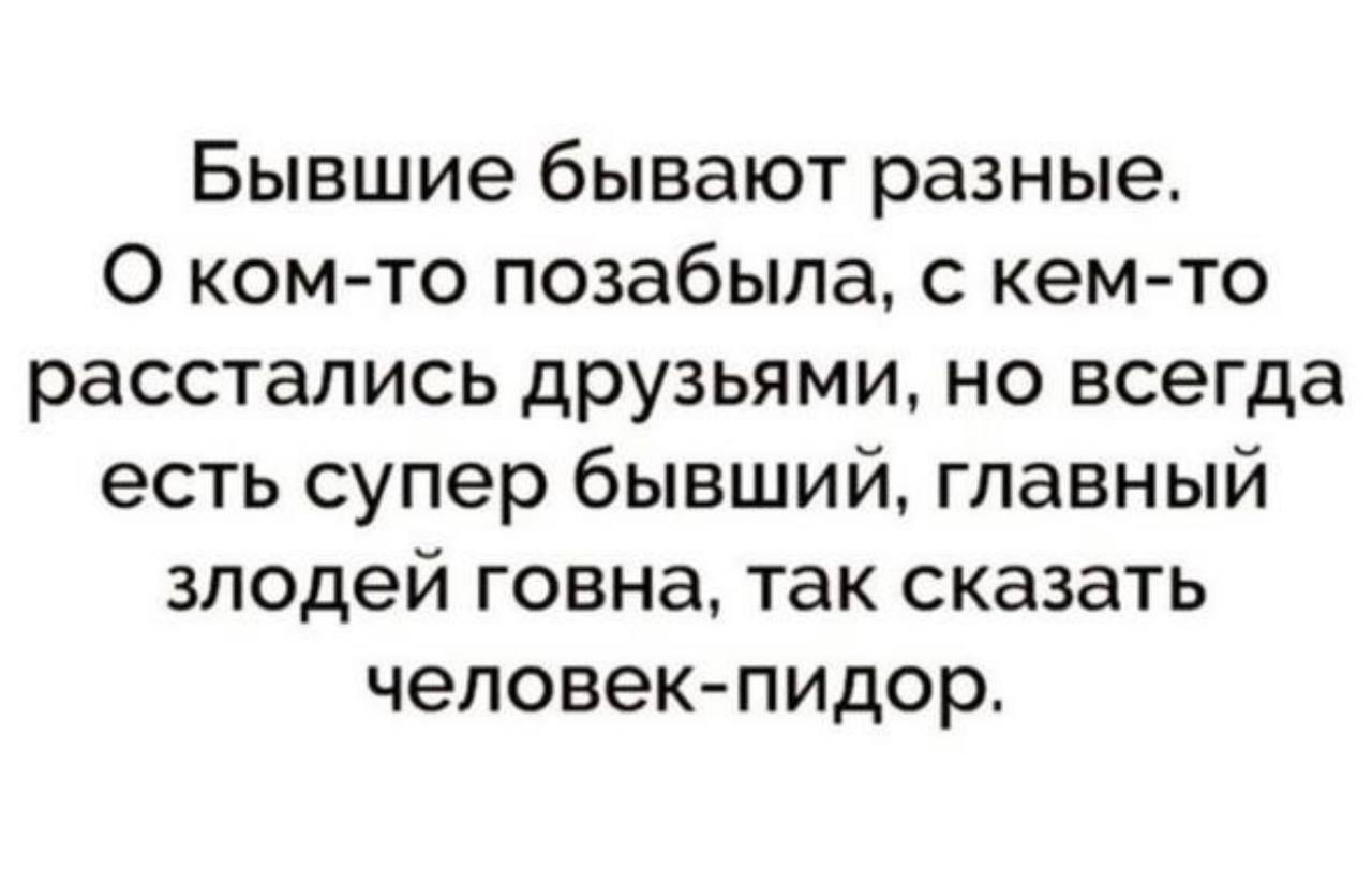 Я Никогда не лезла в его отношения с бывшей первой женой. Он ездил к ней, компании где они собирались - я оставалась дома. Его мама демонстративно дружила с ней. При встрече со мной были рассказы о ней...Всё 🙌...я закрыла это для себя..но у меня "живой" собственный пример, как ведут себя нормальные женщины с бывшей женой...И вот я сейчас бывшая...вторая...И ...я понимаю, что сейчас боженька дал ему кандидатку✊✊✊за все его похождения....