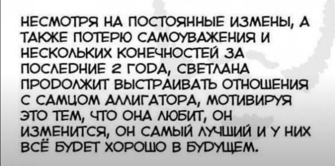 Перечитываю историю чата. Дурно, просто дурно. Бог меня уберёг пока что от полного максимума, полного раскрытия нарциссической сущности. Наверное поэтому я ещё и допускаю их в свою жизнь, играюсь с ними. Пугает факт, что я стала бесстрашная. Или от не любви к себе или от не знания, что вообще происходит.Правильно люди говорят, что лучше быть одной, чем с гавном.Но я ж не слушаю. Пока не вталдычат в голову по максимуму люди мне не полегчает. И оно самое ужасное, когда разочаровываешься в самой себе.Мне все знакомые и чужие люди говорили про мужчин моих.Катя, где ты его нашла.Ты посмотри на него, там по лицу понятно кто он. А я такая в ответ торможу.Та подожди.Ищу что-то в человеке, то чего нет.Одновременно чувства, что действительно ты общаешься с гавном и разочарование, что он опять не тот.Не хорошо так говорить, но после утилизации я была тише травы, ниже воды, не было ресурсов на новых мужчин.И это было идеально.А сейчас хочется кого-то любить и некому дать эти чувства.Вот так просто хочется заоорать тому нарциссу. Ты недостоин любви.Вот и всё.А он даже не услышит это.Он начнёт за своё. Ему нельзя выговариваться.Просто обидно за мужчин, за саму себя.И я знаю, что я если даже начну увеличивать количество своих увлечений, менять сферу деятельности.Я всё равно их встречу.Я знаю, почему я их встречаю.Они на меня в чём-то похожи по жизни.Поэтому я к ним тянусь.Но я эту грань в жизни не могу преодолеть.Если я стану для самой себя идеальной.Мне по факту не нужен будет мужчина.Да и таких не существует в природе.У меня нет идеала мужчины, но если я была б идеальной, то не выбрала б никого.Или просто не верю, что такой человек существует, который меня сможет полюбить искренне. Если следовать из логики, что каждой твари по паре.На данный момент да, максимум, что я могу цеплять это нарциссов.Оно такое между средним и минимальным.Ну пока такое будет происходить я и буду страдать ломками по зависимостям.Мне сейчас морально опять очень плохо. Выхода я пока не вижу. Либо вводить себя в состоянии депрессии искуственно, чтоб не допускать новых людей в свою жизнь.Вообще не общаться.Мне это тоже помогает.Сидела себе, смотрела на тему психологии видео, разбиралась.Порыдала, пожалела саму себя, успокоилась.А сейчас кстати слёз нет.Мне просто хочется постоянно говорить, но не с кем.Все знакомые уже в курсе, что я опять под зависимостью, я им рассказываю, как его посылаю, оно возвращается обратно.Просто уже искренне сочувствуют.Говорят, ну ты и сильная, но всё таки можно быстрее прекрати страдать по этим всем своим нарциссам.Они уже с моих рассказов, псих.портретов начали тоже разбираться в НРЛ.Что мне сейчас не хватает по жизни?Да всего хватает, живу побогаче чем все мои нарциссы, интересов много, работа есть.Грех жаловаться на что-то.Но тем не менее.С первым я разбиралась с помощью группы пару месяцев и то эта тема давно должна быть отжитой ещё перед тем как узнала о нарциссах и группе .А что с этими делать мелкатнёй.Если я с ним ещё не жила, а он присосал, подсадил на идеализацию, на качели.Давит на больное ещё, что вот родим ребёнка.Пора б уже тебе родить.Ну да, ну да.Было б от кого. Жить нам негде будет то.Он даже об этом не задумывается.Есть у меня квартира, но я не хочу его даже туда пускать.На всё готовое приедет.Это потом он ещё и квартиру отожмёт.Я всегда всем говорю, что живу с ма