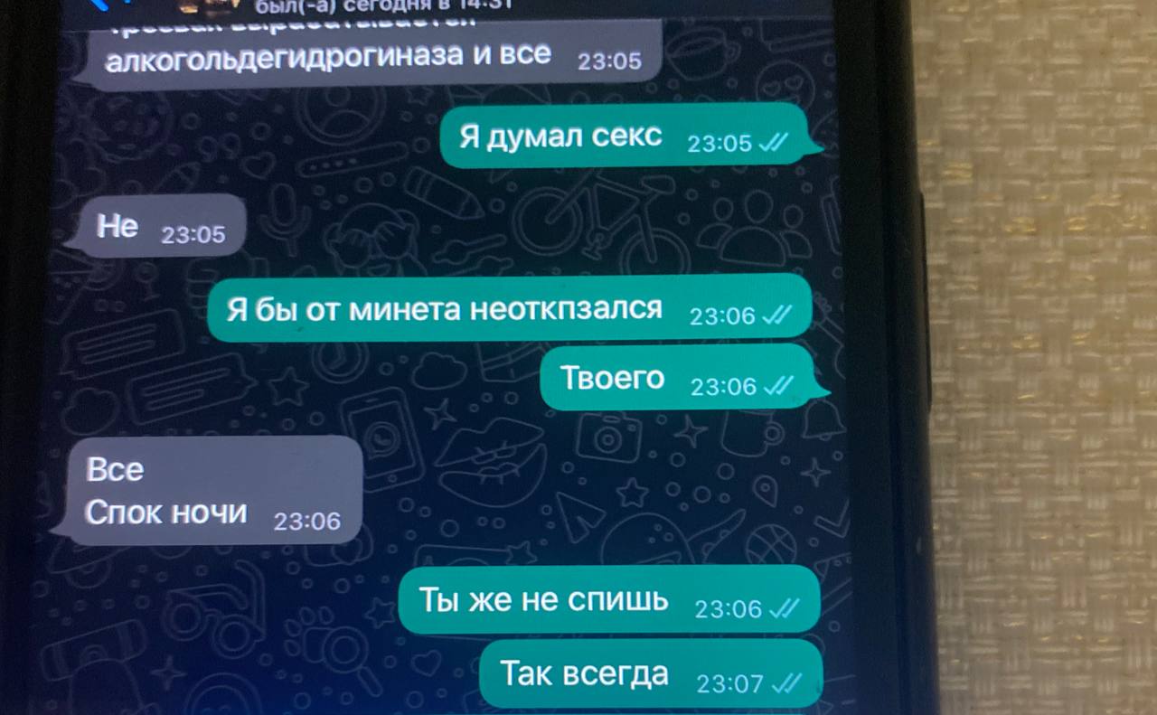 Та, у которой просит минет - бухгалтер на его фирме, тоже к нам домой ходила в гости. Ну это же просто пиздец😭😭