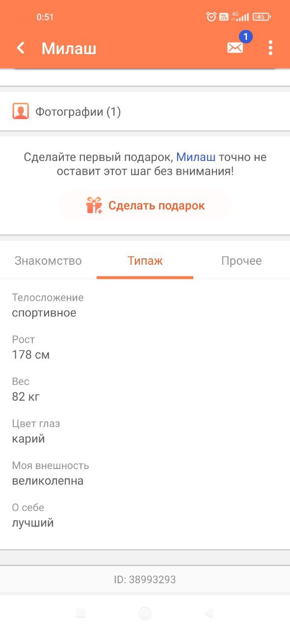 Это нарц на сз. Не повелась на лесть, сразу прогнулся. А меня затошнило аж. Захожу на его анкету, А там классика!