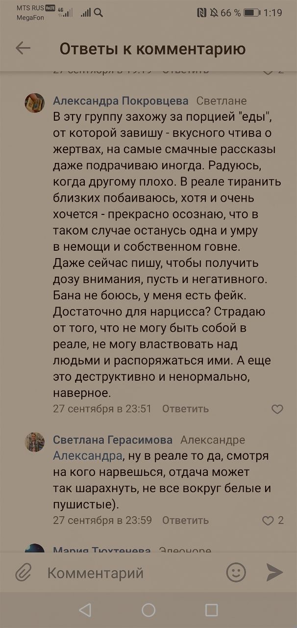 Единственное условием, при котором нарцисс может принести вам вред и как-то влиять на вашу жизнь, это открытое сердце. Если это не про любовь, то про жалость, сочувствие, желание помочь, объяснить и так далее. Это даже наивная вера в какую-то положительную динамику развития этих отношений, эта надежда тоже ваш враг и позволяет нарциссу иметь вход в вашу душу. Узнав об особенностях нрл, многие жертвы начинают жалеть нарцисса, ведь он не может по-другому. На самом деле, может, до 40 лет он очень хорошо может делает выбор, он может себя контролировать, сублимировать свою жестокость, или, как минимум, компенсировать благами или сексом, но после этого возраста, привыкший к безнаказанности и подчинению своих близких, он теряет берега, так как эти паттерны проведения очень примитивны, и мозг достаточно быстро привыкает к ним, а сложные, конечно, отбрасывает. Не знаю, кто более опасен и разрушителен, нарцисс рядом с эмпатом, стирающий его личность, организовывая круглосуточный ад, или эмпат рядом с нарциссом, который своей любовью и принятием, опускает эту незрелую личность на самое дно в плане моральных ценностей и заставляющий деградировать нарцисса и его мышление со страшной скоростью. Эмпат разрушает нарцисса, все должны жить с теми, кто им близок по энергиям, этот потенциал, который эмпат видит в человеке, его собственная личность спроецированная на другого, мощный стимул для нарцисса. Стимул надеть эту маску, умело ей пользоваться, но не стать этим человеком. Это настолько больше всего, что нарцисс видел в своей жизни, а, в особенности, в своём детстве, что отказаться от этих иллюзий он никогда уже не сможет. С этой маской, но без страховки в виде эмпата, его любви, ресурсов и энергетики, в дальнейшем он становится очень уязвим для других нарциссов. А вот с ними, несмотря на то, что они обдирают, используют и нападают, он духовно развивается, и это гораздо более эффективное сотрудничество, чем с теми, кто его по-настоящему любит.