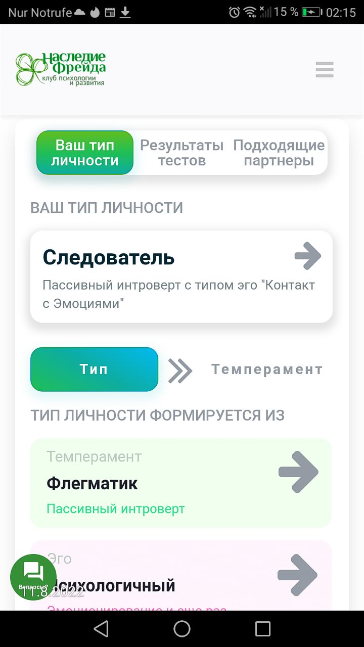 https://freud.online/types/test Не знаю, актуально ли это будет в чате, мне посоветовали этот тест на тип личности, и там есть подходящие психотипы партнёров