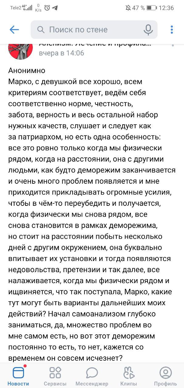 Еще вспомнила: когда начались ссоры между нами, я его посылала, он пинговал как обычно, и что он мне сказал: мы молодая пара, у нас начинаются отношения, я исправлюсь (ему 40, мне 48 было) Ага, исправится, не меняются они, все понимают что делают. Ржу до сих пор когда вспомню: молодая пара🤣