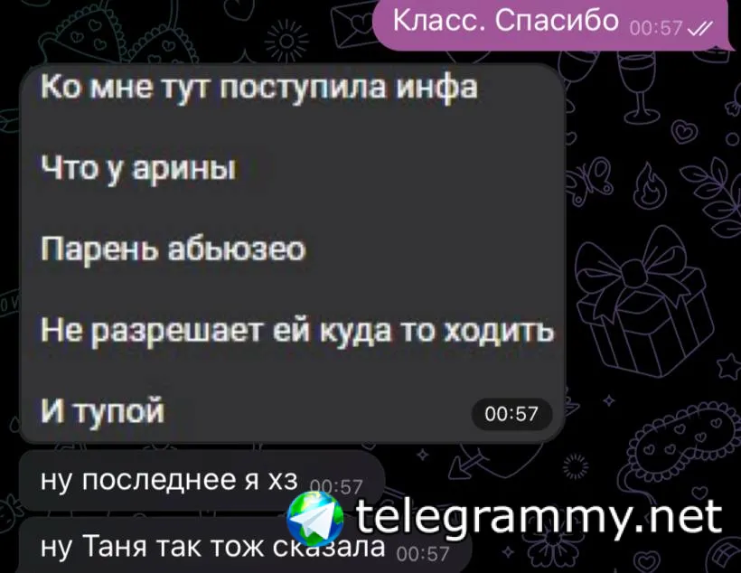 А я вообще сомневаюсь что найдётся ещё одна такая дура как я которая с ним будет 2 года, у него была цепочка где девушки сбегали ещё на этапе 1 месяца когда он просто ревновал, не то что контролировал и остальной ужас