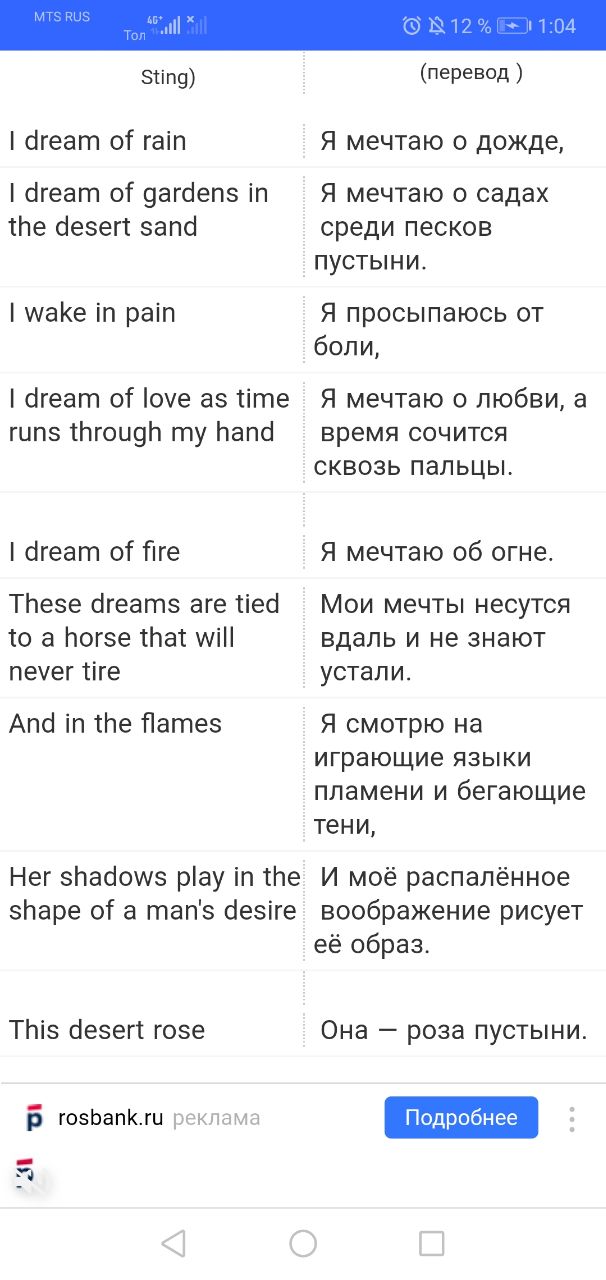 Слушала песню Стинга и нашла перевод его знаменитой песни. Ну не про нарцев ли??? Однозначно то, что мы чувствовали и чувствуем.