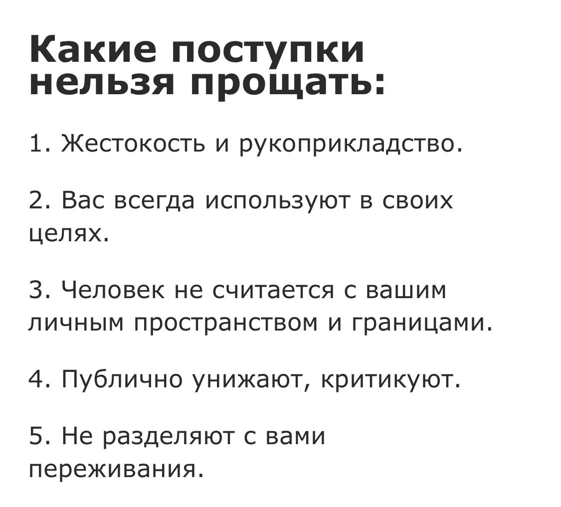 Мне психолог в начале работы сказала, не всё можно и нужно прощать! Я не сразу это поняла, искала ему оправдания. Их нет!!! Как можно простить человека, который тебя ненавидит и желает тебе смерти и страданий? Ну уж нет!