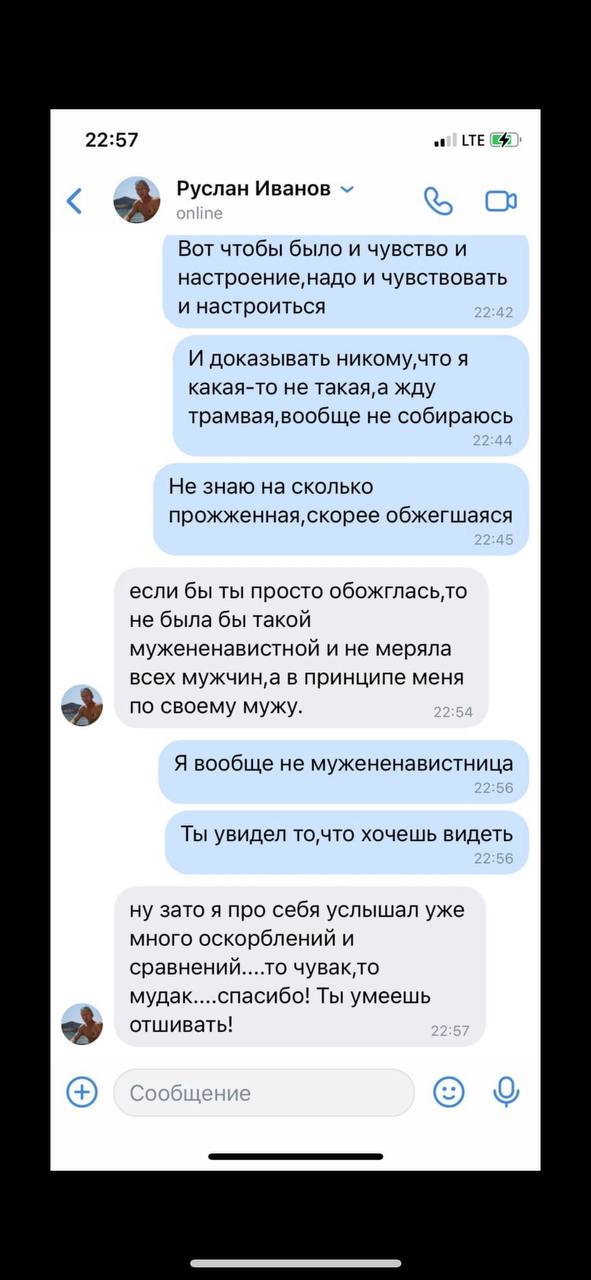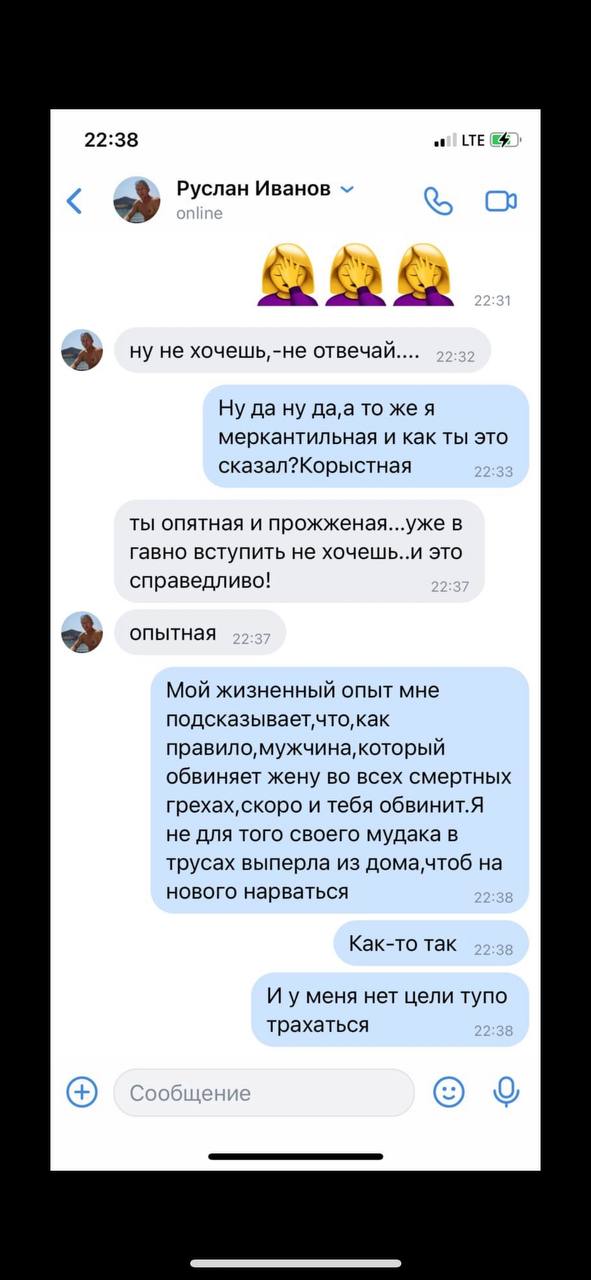 Не вязались эти рассказы с невинной внешностью.Воспринимала,как глупую шутку.и вообше я далека от дивиаций,судишь то по себе.Поэтому и тревогу не била.А под конец совместной жизни стал уговаривать на тройничок,говорил,что я вообще фригидная и отсталая.🤦♀️