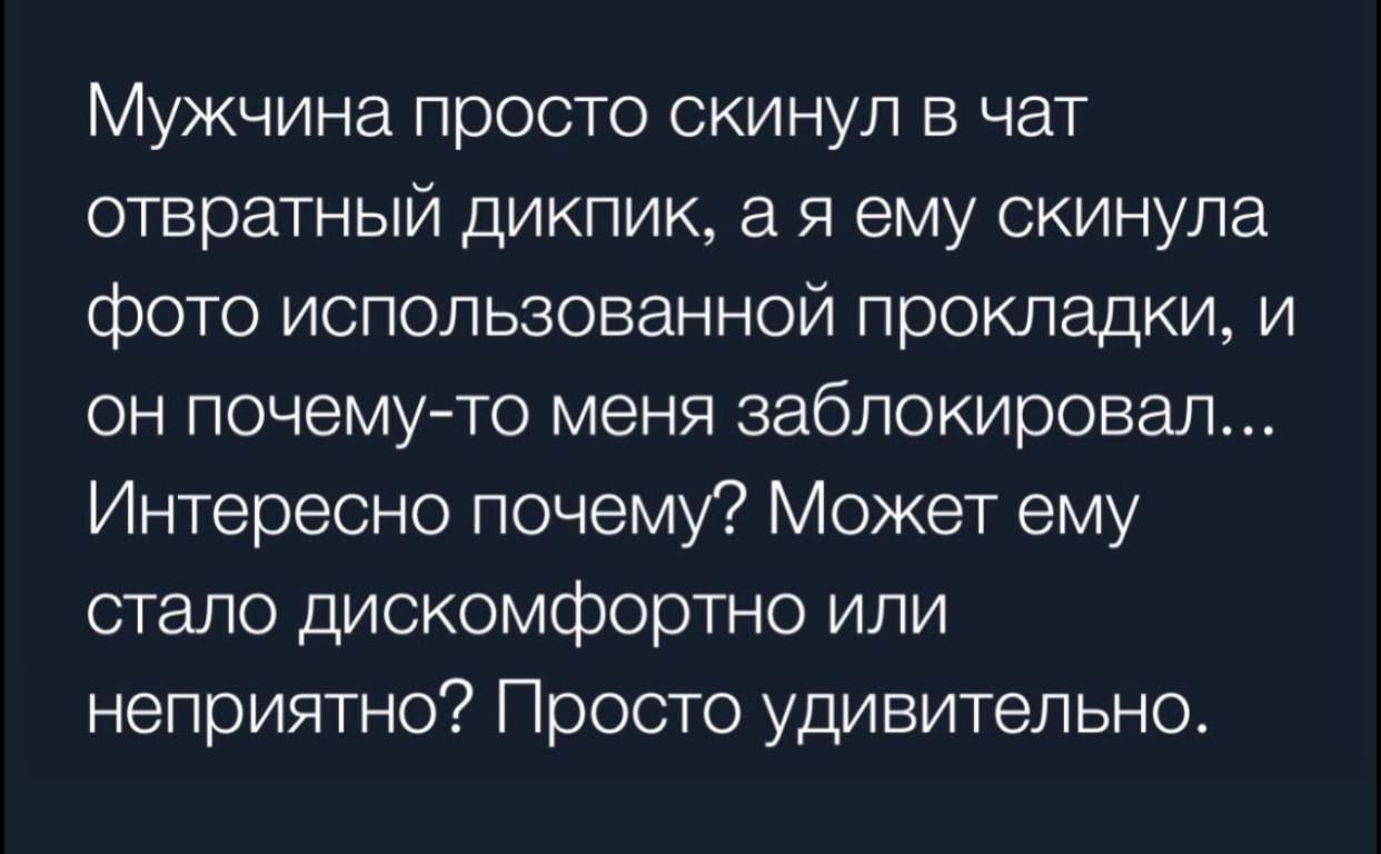 А на первых знакомствах я не просила, член прилетел фото😂
