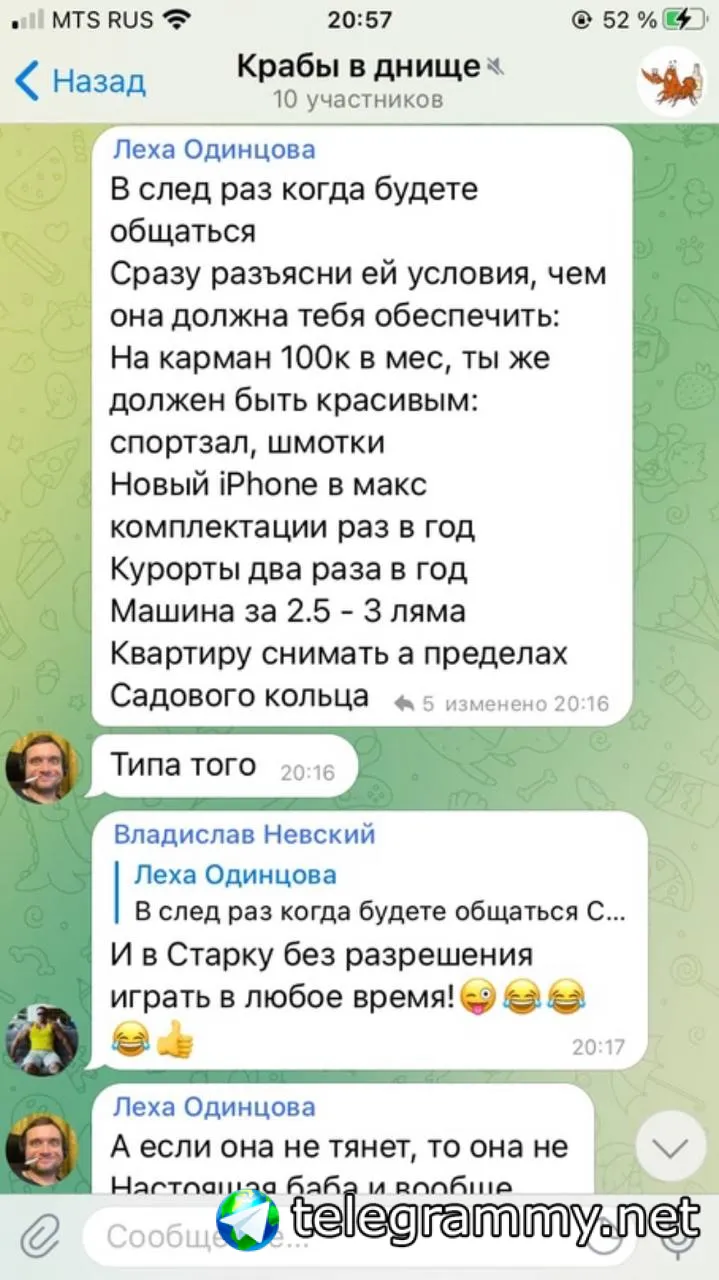 Девочки, я скину несколько его постов и комментов дебилов его друзей в чат? Это пиздец. Чувак живет в съемной коммуналке, приезжий и нищий. Я москвичка у меня все есть.