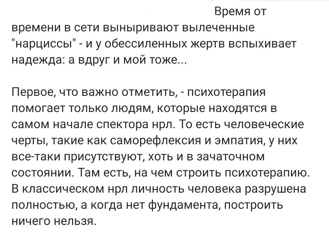 Чёт читала и вспомнила Бориса @yarboris. У некоторых вставал вопрос: так всё-таки нарц он или нет? Из этого отрывка становится более или менее понятно, что не бывает крайностей: нарц или нет. У всех разная степень "поражения".