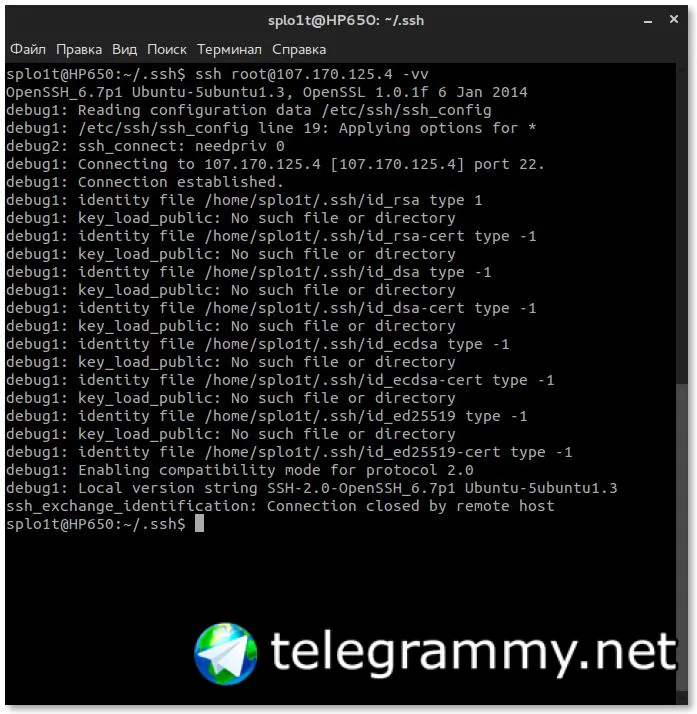 Похоже что на машине включена аутентификация по ключам, а у тебя в ~/.ssh ключей нет. Клиент не может предоставить серверу необходимый ключ, сервер рвёт коннект