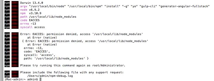 Черным по белому написано! Устанавливаешь пакеты глобально. Вот он и ругается мол Пшел вон! У тебя не прав доступа. Глобально устанавливай пакеты с sudo