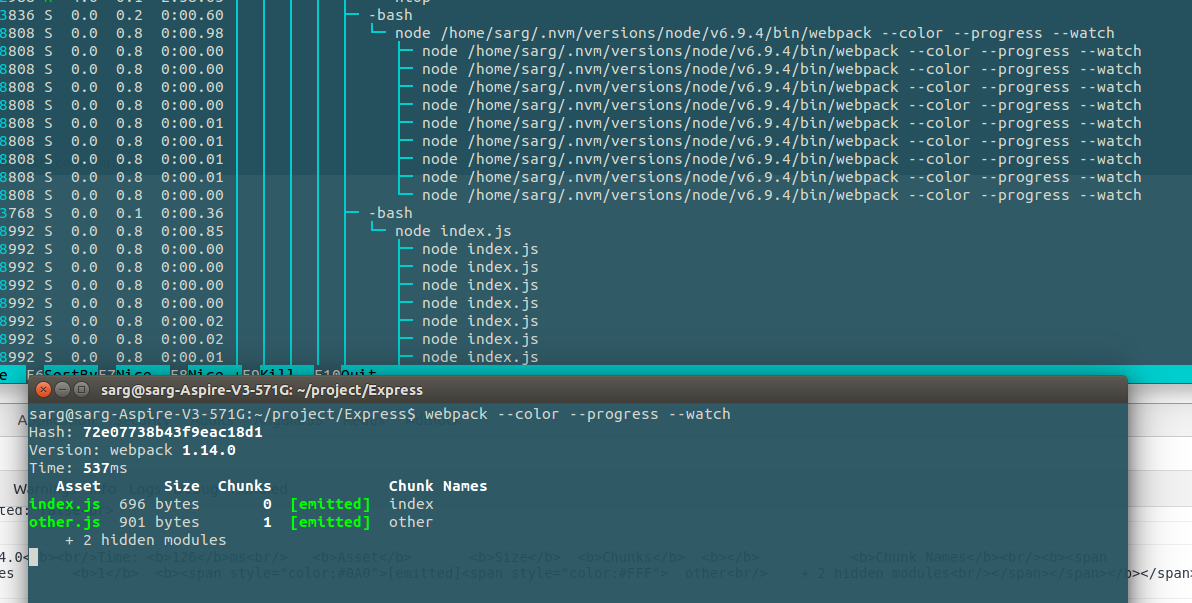 Подскажите, а почему когда я запускаю webpack, создаеться несколько экземпляров его процесса?