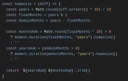humanize(moment.duration(momentTo.diff(momentFrom))