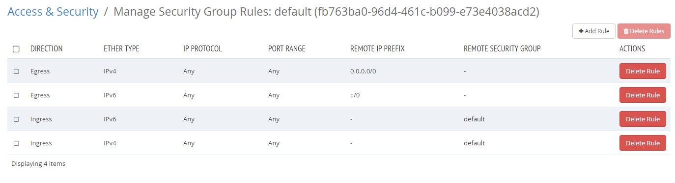 В security group нужно в явном виде весь нужный трафик разрешить.