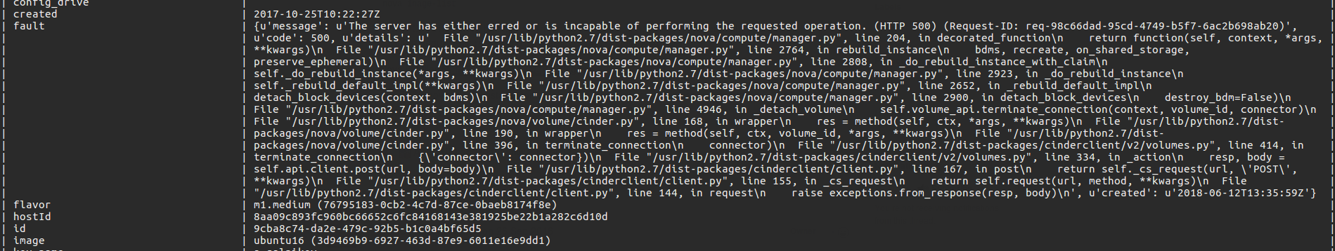 | 257 | d8ea35f05a7c | a15eef7ffd28 | d8ea35f05a7c | a15eef7ffd28 | 10.254.1.133 | failed | 9cba8c74-da2e-479c-92b5-b1c0a4bf65d5 | None | None | 2018-06-12T11:18:57.000000 | 2018-06-12T11:21:04.000000 | evacuation |