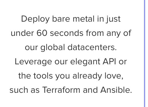Но если вернуться к packet.net я хз. То ли там кастомные биосы или вообще серверы то ли они держат в теплом резерве готовые, как я и писал. Очень уж это быстро.