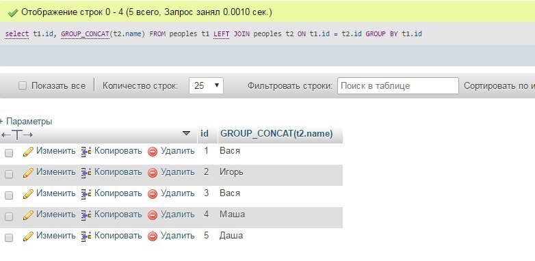 (SELECT GROUP_CONCAT(name) target FROM peoples WHERE age = age1) as target