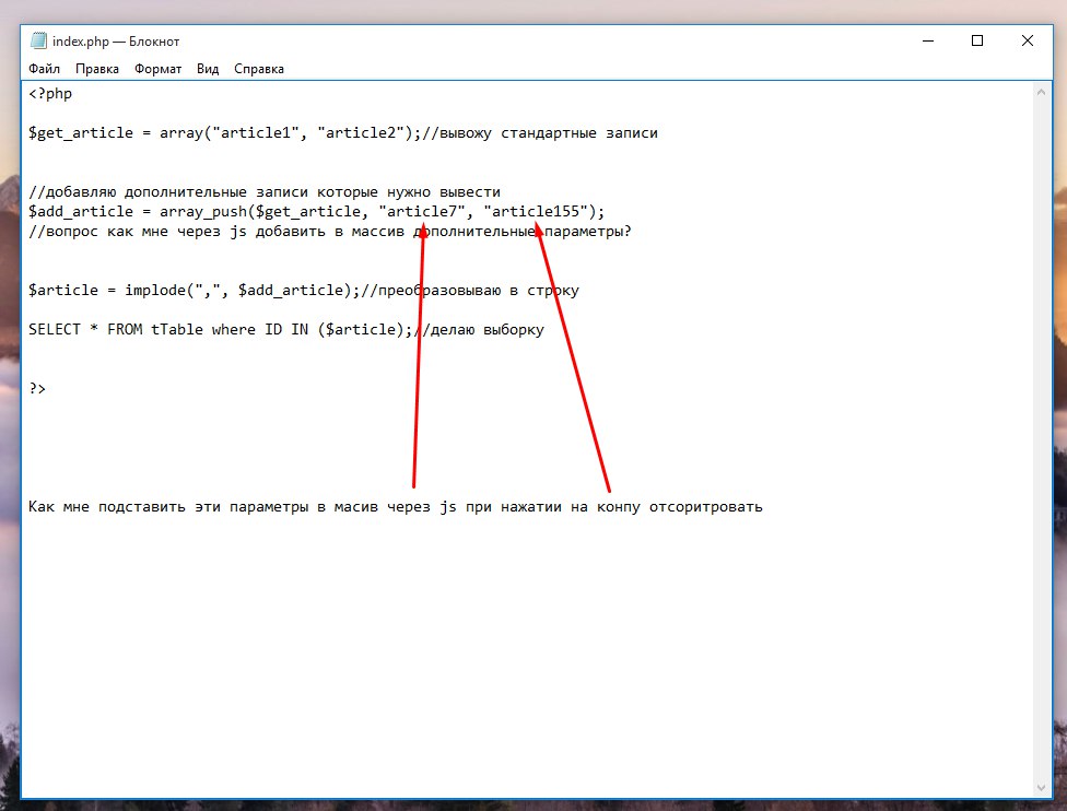 как подставить в массив не знаю