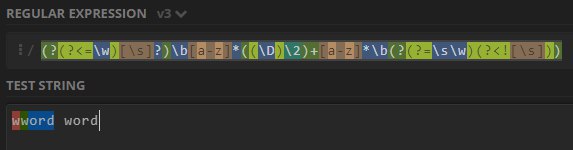но на этой застрял в случае, когда такое слово (с двумя повторяющимся буквами) между другими словами