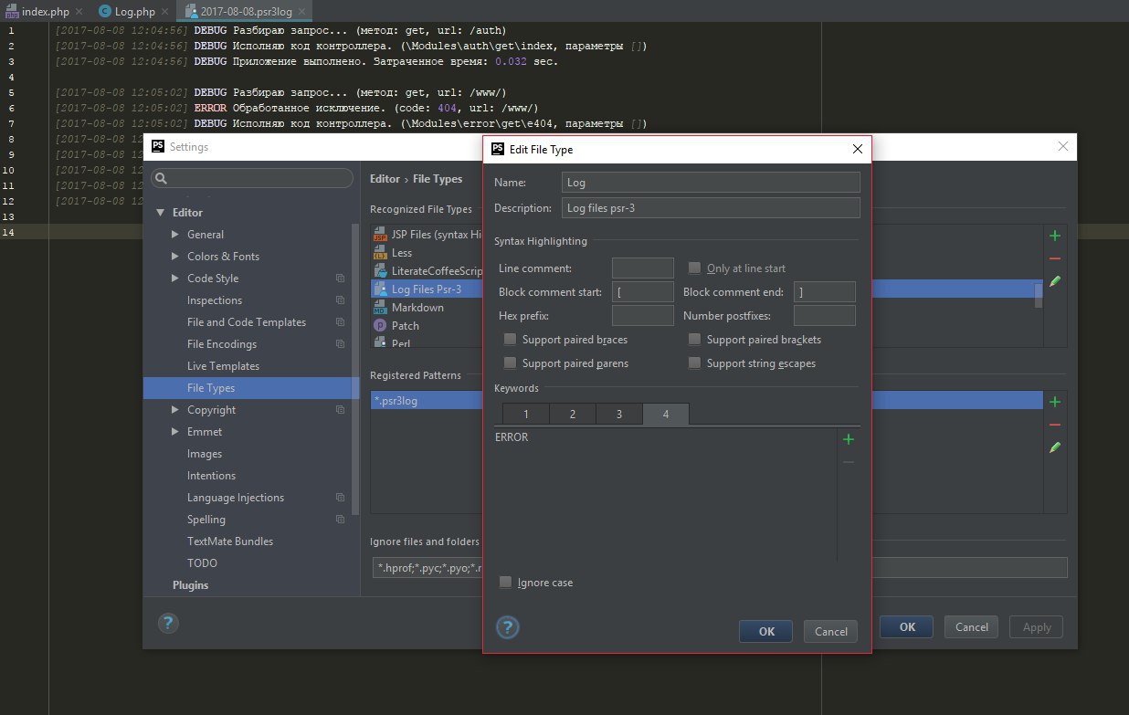 Всем привет, кто-нибудь знает как организовать подсветку логов (psr-3) в phpstorm?