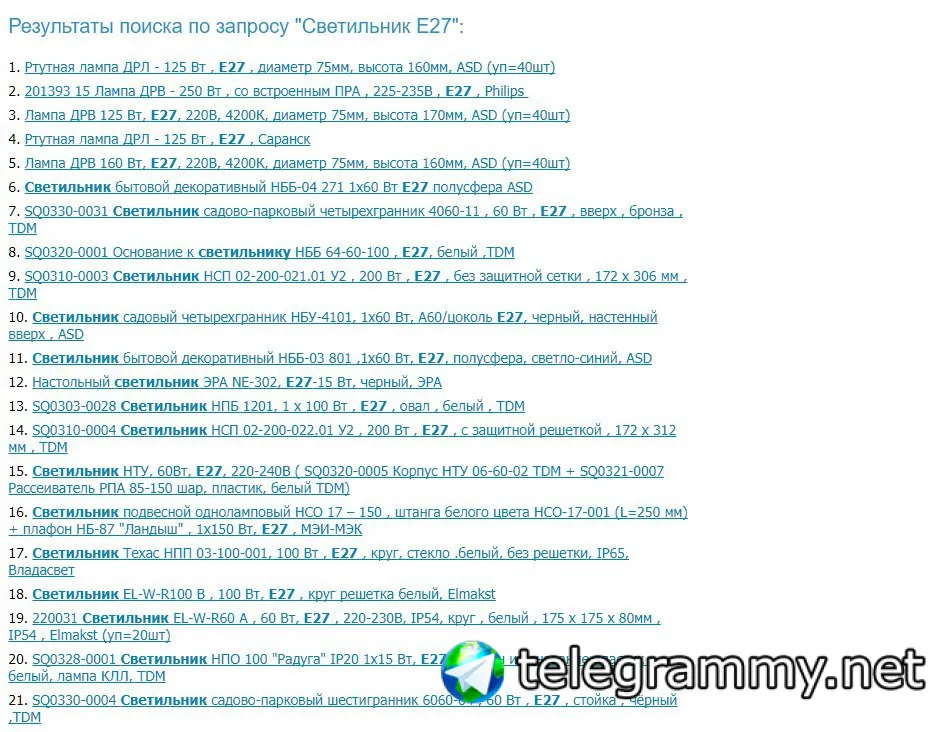 И есть например вот такой запрос "Светильник Е27"