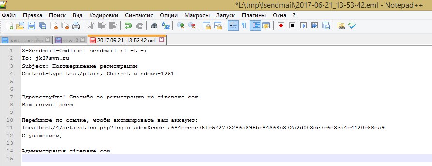 Вот это и есть та самая заглушка. Все письма сохраняются в !sendmail.