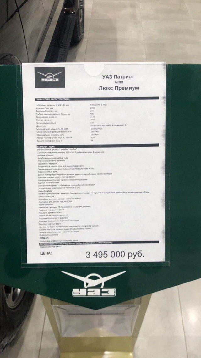 А вот и цены на вип-плюс-супер-лакшери "Патриот" подъехали