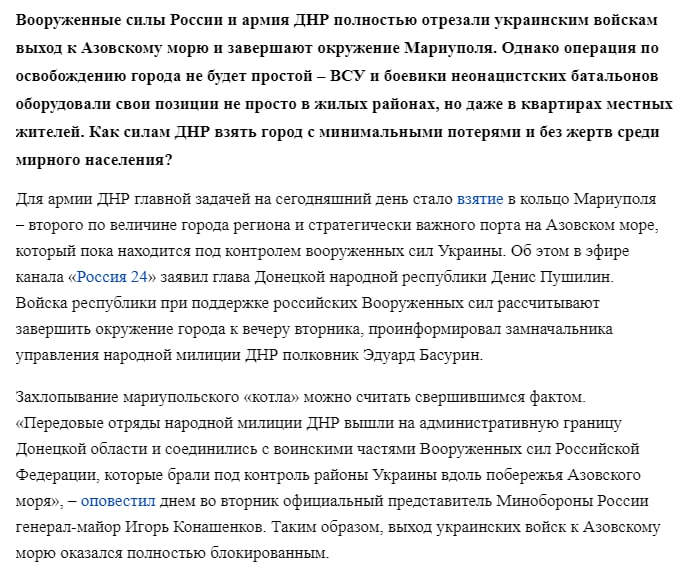 Мариуполь еще не взят. Но все отрезано им