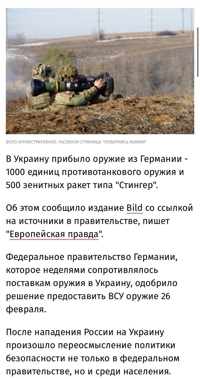 Кстате оружие поставляют и прибалты и немцы, а чета угрозы уничтожать грузовики так и не выполняются 🤷♂️