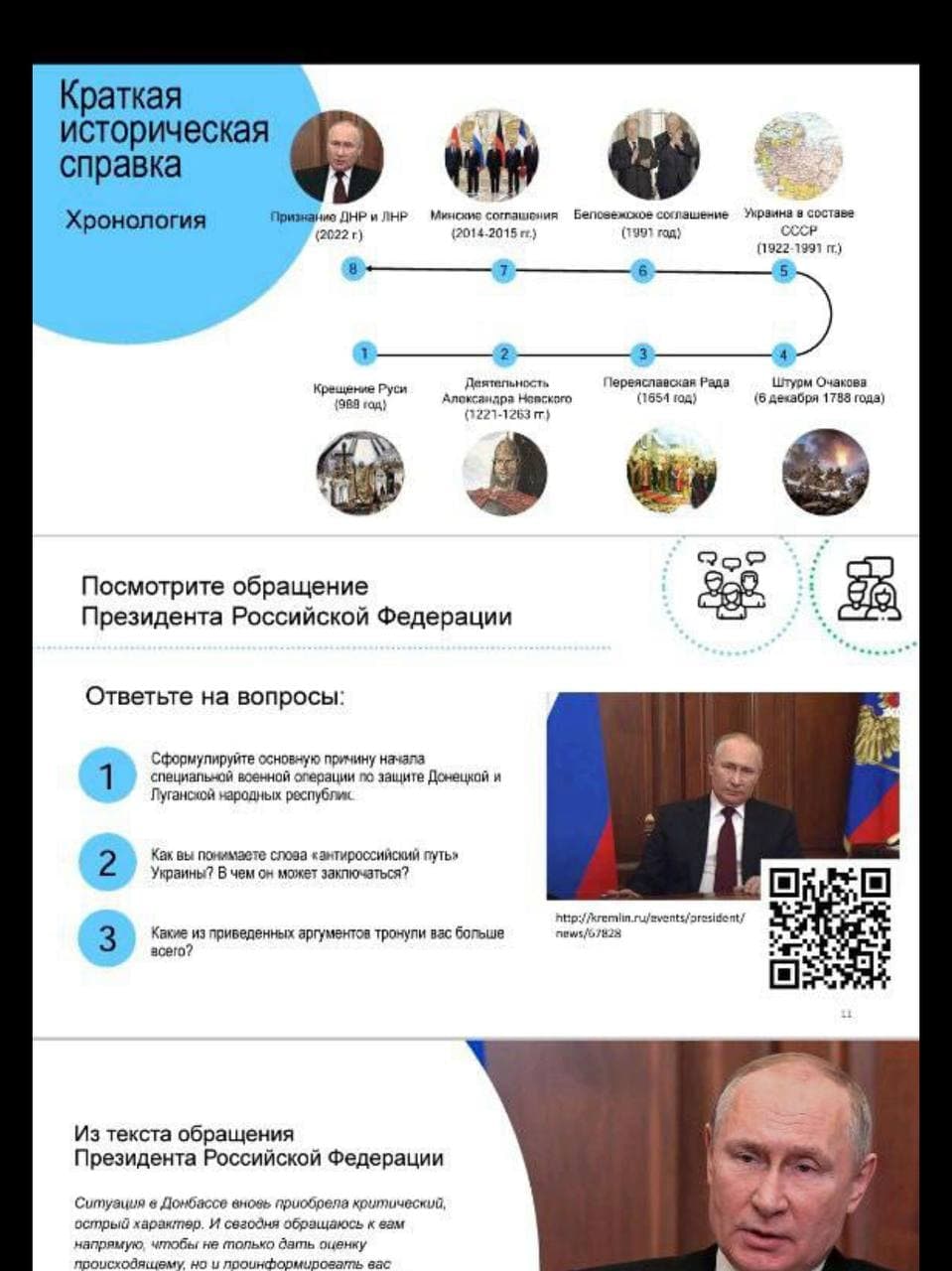 Тем временем на россии уже подготовили методички для пропаганды. Юным людям будут наводить исторические справки, пихать в мозги обращение путина и заставлять их отвечать на вопросы о "ЛДНР". Пиздец.