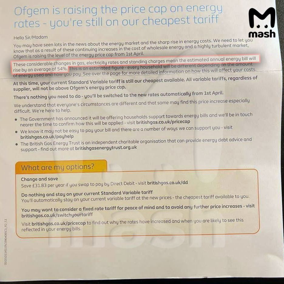 Такие письма счастья получили некоторые налогоплательщики Великобритании. С 1 апреля годовой тариф на коммуналку у них вырастет сразу на 54%. Местный госрегулятор рынков газа и электроэнергии (Ofgem) уклончиво рассказывает, что причина в том, что "текущие мировые оптовые цены на энергию выросли в связи с увеличением спроса и снижением её доступности", а некоторые поставщики и вовсе прекратили свою деятельность. Про санкции против крупнейшего поставщика газа в Европу (это РФ) решили не говорить.
