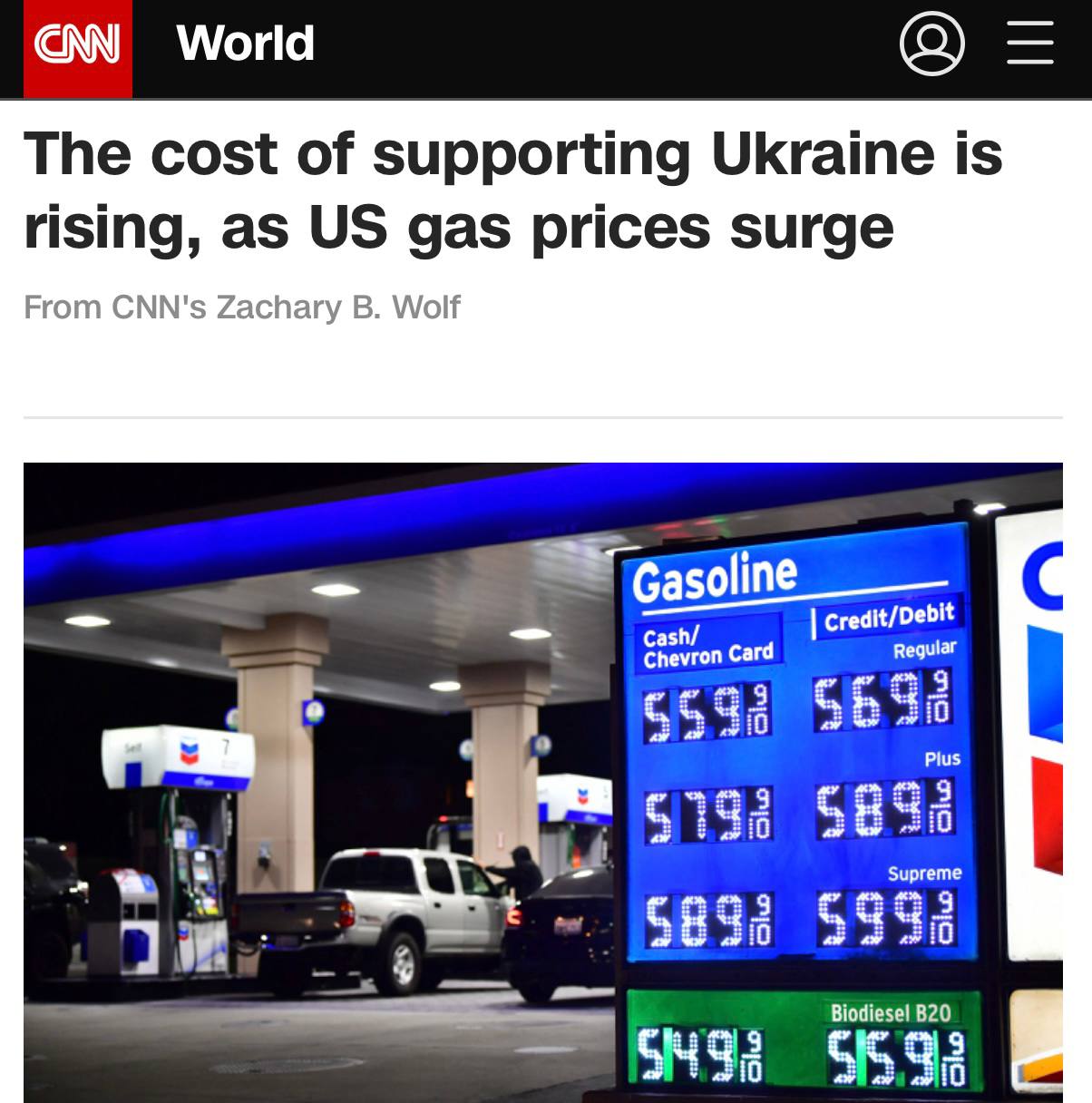 🇺🇸 «Цена поддержки Украины растет вместе с ценами на топливо в США»: CNN удивлен, что антироссийские санкции так быстро отразились на американцах