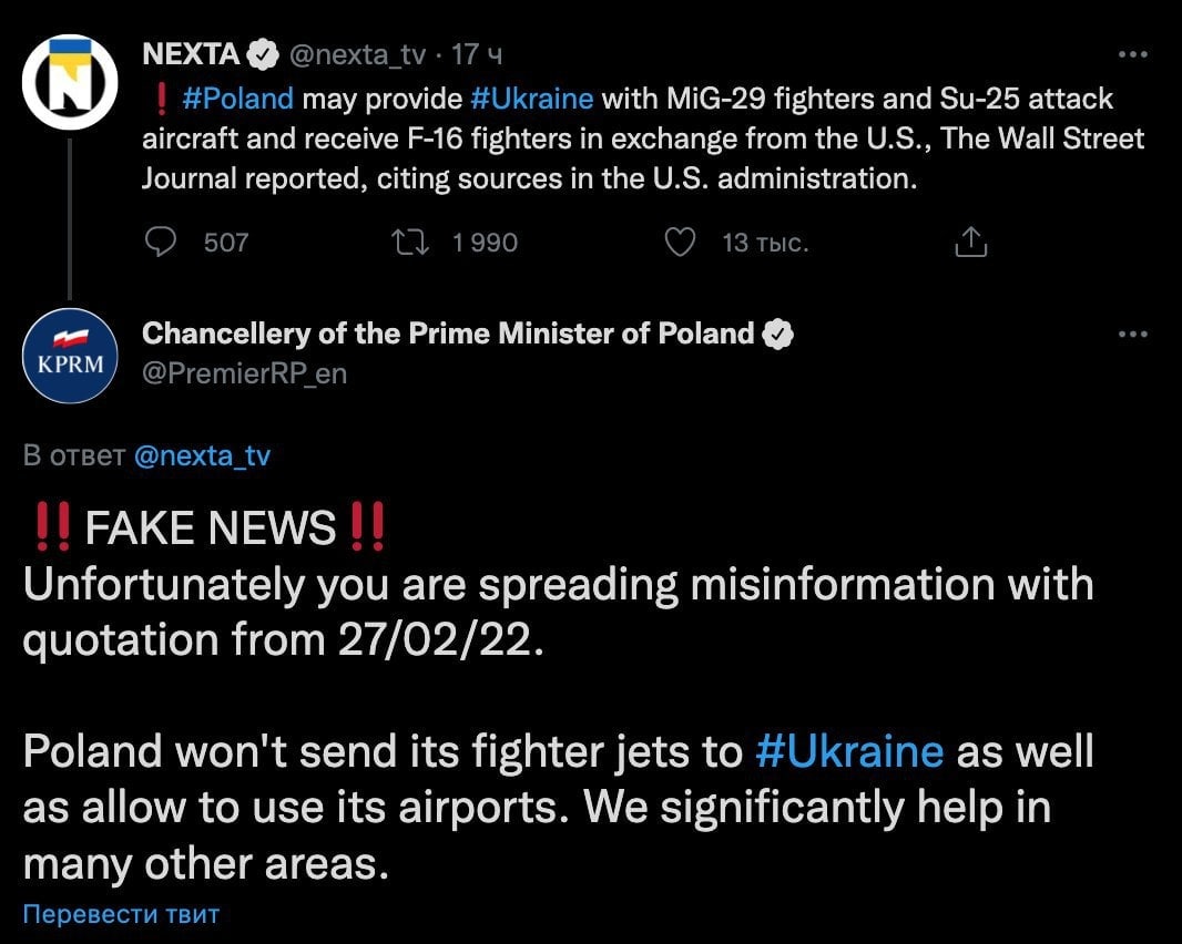 Канцелярия премьер-министра Польши сообщает, что НЕХТА — фейк-ньюс. Да кто бы мог подумать!