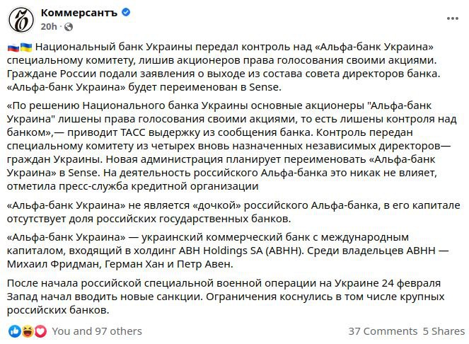 Также были заблокированы сайты некоторых СМИ, принадлежащие либералам. А на фоне падения котировок акций наших компаний, правительство выделило из ФНБ средства, чтобы воспользоваться ситуацией и выкупить за копейки наши активы у иностранцев.