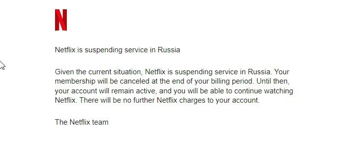 Netflix приостанавливает работу в России.