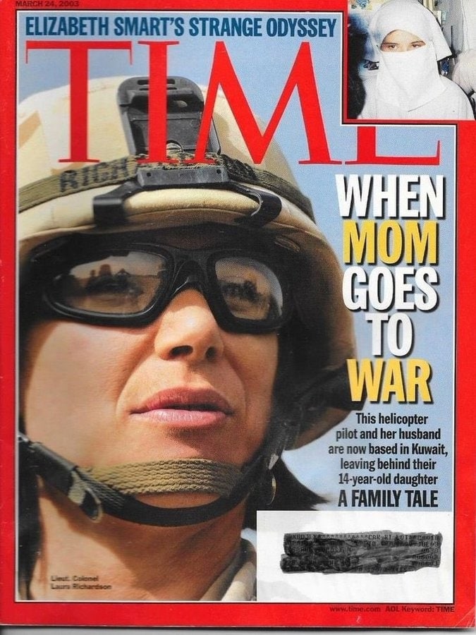 05. TIME, «Когда мама идет на войну» («Женщина-пилот и её муж служат в Кувейте, оставив дома 14-летнюю дочь: семейная история»), 2003.