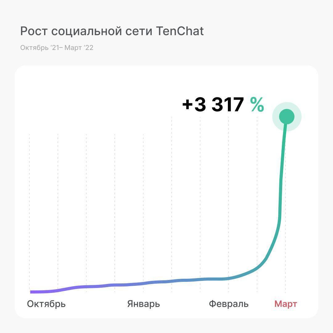 📈Российская социальная сеть TenChat (аналог Facebook) показала рост новых пользователей - 3300%